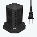 購入したPowerjcのタワー型電源タップは、12個の電源コンセント(3P)と、9つのUSBポートを搭載しています。四方向に向いている電源コンセントには、多角的に電源コードを差し込むことができるので、電源コードを無理に曲げたりせずに差し込むことができます。