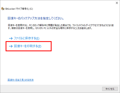 「回復キーのバックアップ」から「回復キーを印刷する」を選択すれば可能です。