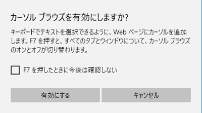 | F7 | カーソルブラウズ 有効・無効 | カーソルブラウズ 有効・無効 | キャレットブラウズモード 有効・無効 | - |